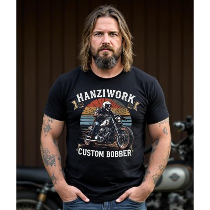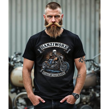 Pánský biker triko HANZIWORK s drsným motivem Chopperu a velkým...