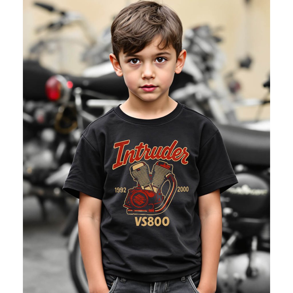 Dětské tričko Intruder VS800 s retro motorem a ročníky 1992–2000. Pohodlný střih, příjemný materiál, výrazný old-school Hanziwork design.