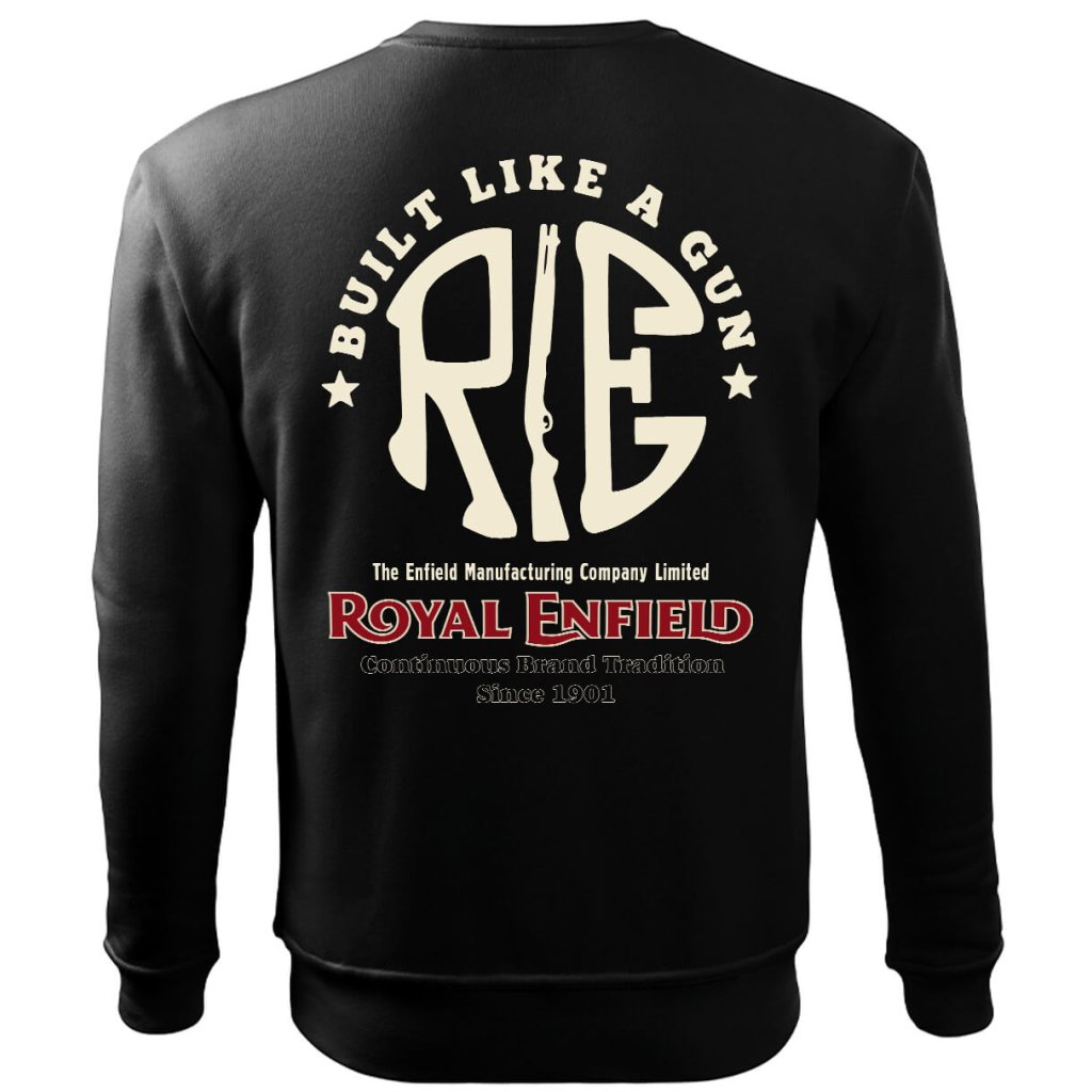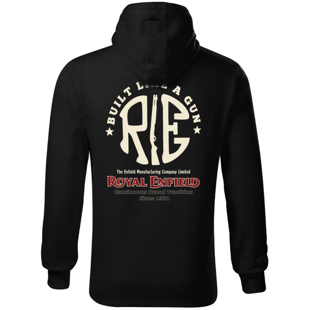 Pánská motorkářská mikina Royal Enfield Built Like A Gun je poctou legendární britské značce, která od roku 1890 symbolizuje kvalitu a odolnost. Vintage potisk s ikonickým logem dělá z mikiny stylový kousek pro každého motorkáře. Výborně se hodí k triku ve stejné grafice. Vyrobeno s láskou a hrdostí v České republice.