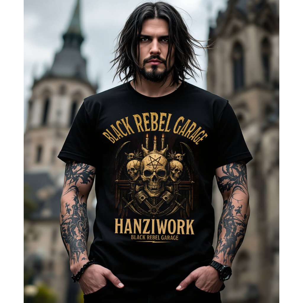 Tohle pánské triko Black Rebel Garage není jen kus oblečení – je to gotický talisman pro chlapy, kteří se nebojí stínu.