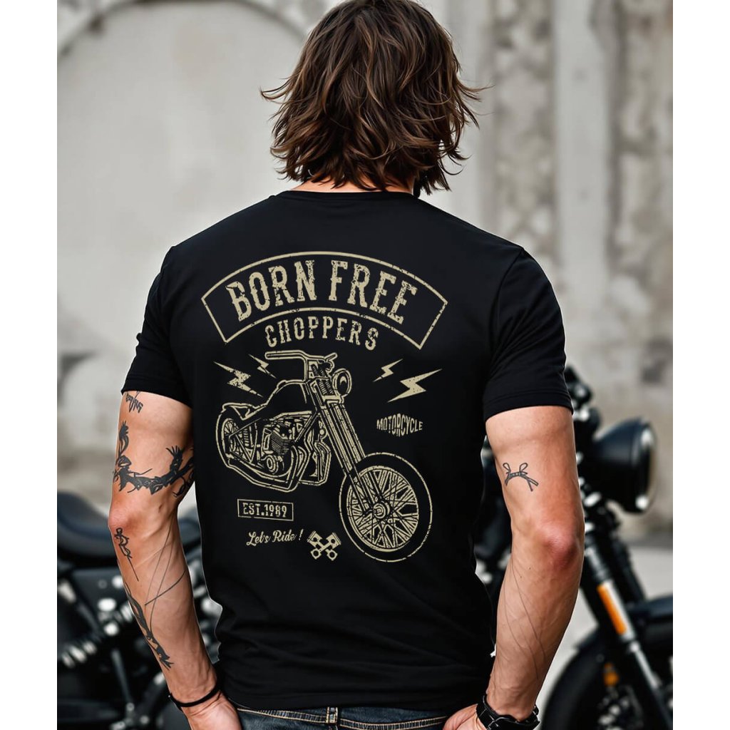 Pánské tričko Born Free Choppers s potiskem masivního chopperu a vintage nápisy je symbolem svobody na silnici. Ideální volba pro všechny, kdo jedou bez kompromisů a hlavně se narodili svobodní.