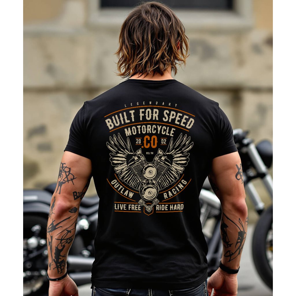 Pánské motorkářské tričko Hanziwork Built For Speed přináší vintage design s okřídleným dvouválcem. 100% bavlna a pohodlný střih zaručí styl i komfort.