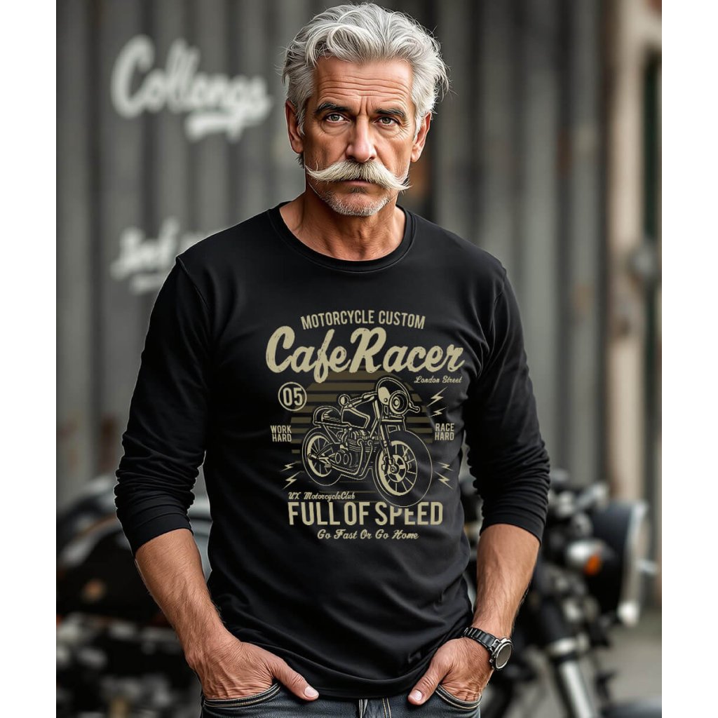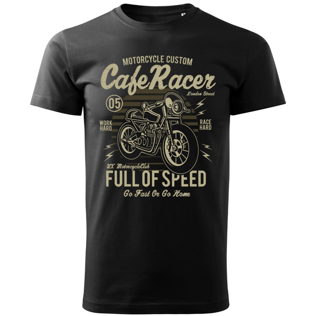Objev rychlost a styl s trikem Cafe Racer Full Of Speed! Tento originální design zachycuje krásu klasické Café Racer motorky, která symbolizuje svobodu, výkon a drsnou eleganci. Perfektní pro milovníky custom motorek, vintage stylu a života v rychlém pruhu. Triko je vyrobeno z kvalitní 100% bavlny, která zajistí pohodlí i dlouhou životnost. Ideální volba pro každého, kdo žije pro benzín, rychlost a legendární Cafe Racer kulturu! Vyrobeno s láskou a hrdostí v České republice.
