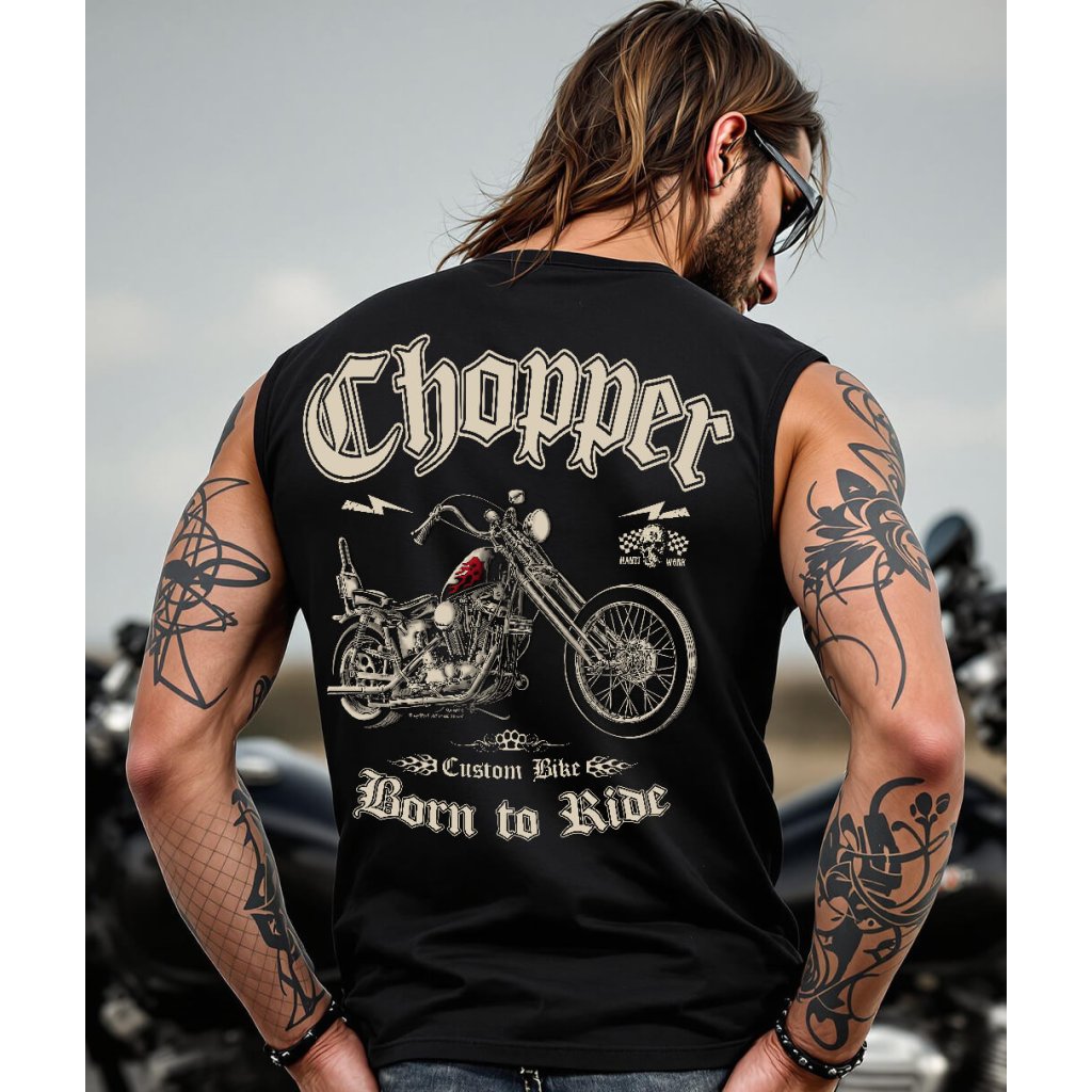 Motorářské pánské tričko Chopper Born To Ride je kus, co voní benzínem, kouřem z výfuku a starým dobrým rock’n’rollem. Stylovej vintage potisk s detailním chopperem dá jasně najevo, že jedeš svůj styl a žádný kompromisy.