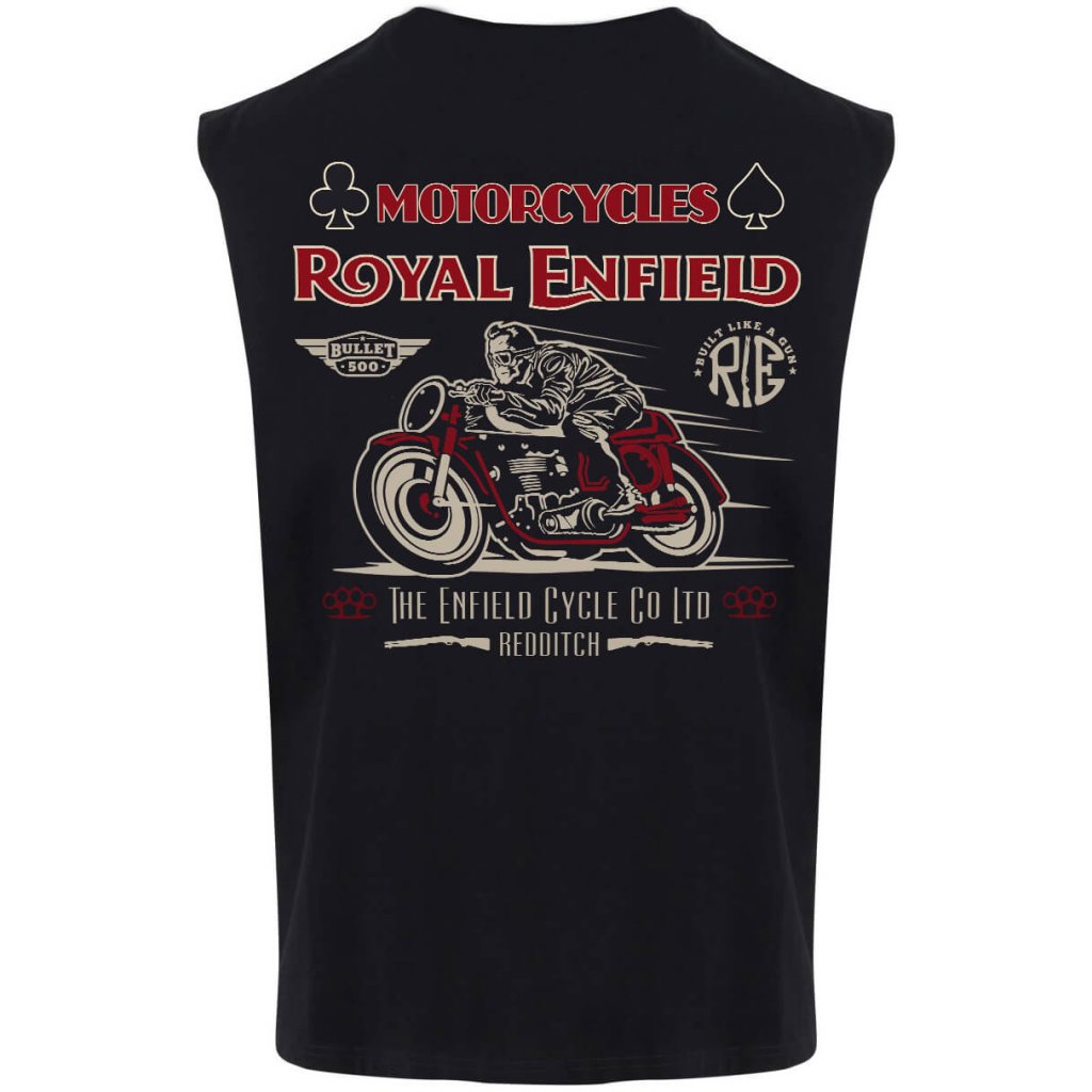 Pánské tričko Royal Enfield Bullet 500 je určené pro všechny, kdo mají slabost pro klasické motocykly a jejich příběhy. Potisk zachycuje jezdce na legendárním stroji Bullet 500, který se představil už v roce 1932 na londýnské Olympia Motorcycle Show. Tento model se stal jedním z nejdéle vyráběných motocyklů na světě a dodnes je symbolem vytrvalosti, jednoduchosti a spolehlivosti. Motiv doplňují ikonické prvky Royal Enfieldu – nápis „Built Like a Gun“ i detailní vintage grafika.
