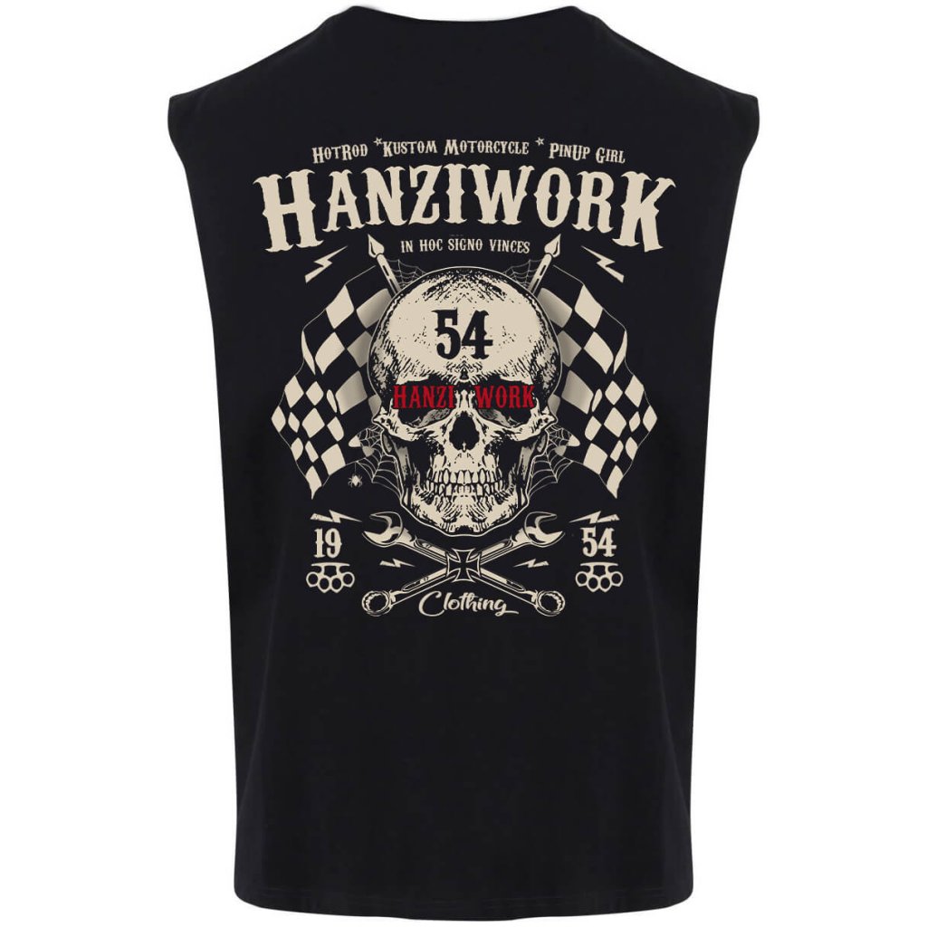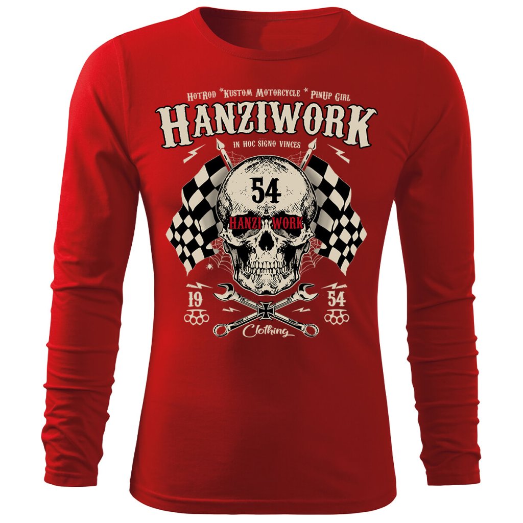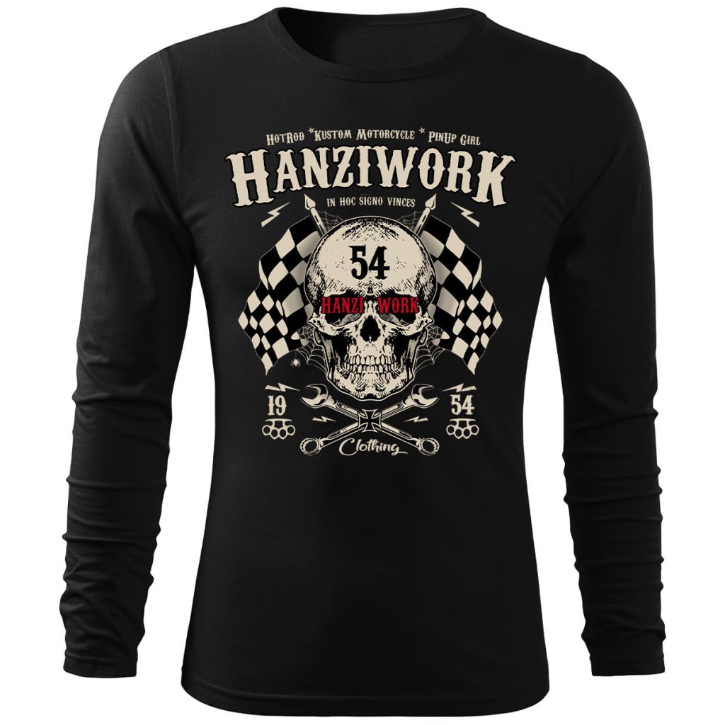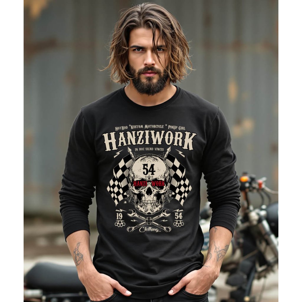 Pánské tričko Hanziwork Skull není jen obyčejný kus oblečení, ale výraz postoje a životního stylu. Potisk kombinuje lebku, křížené klíče a šachovnicové vlajky, které společně vytvářejí silný symbol rebélie, odhodlání a vášně pro stroje i silnice. Vintage typografie a detaily inspirované motorkářskou kulturou dodávají tričku autentický Oldschool charakter. Vyrobené z kvalitní 100% bavlny nabízí maximální pohodlí, odolnost a příjemný pocit při nošení. Díky pečlivému zpracování a pohodlnému střihu se hodí jak do dílny, tak i na motorkářský sraz nebo noční jízdu po asfaltu.